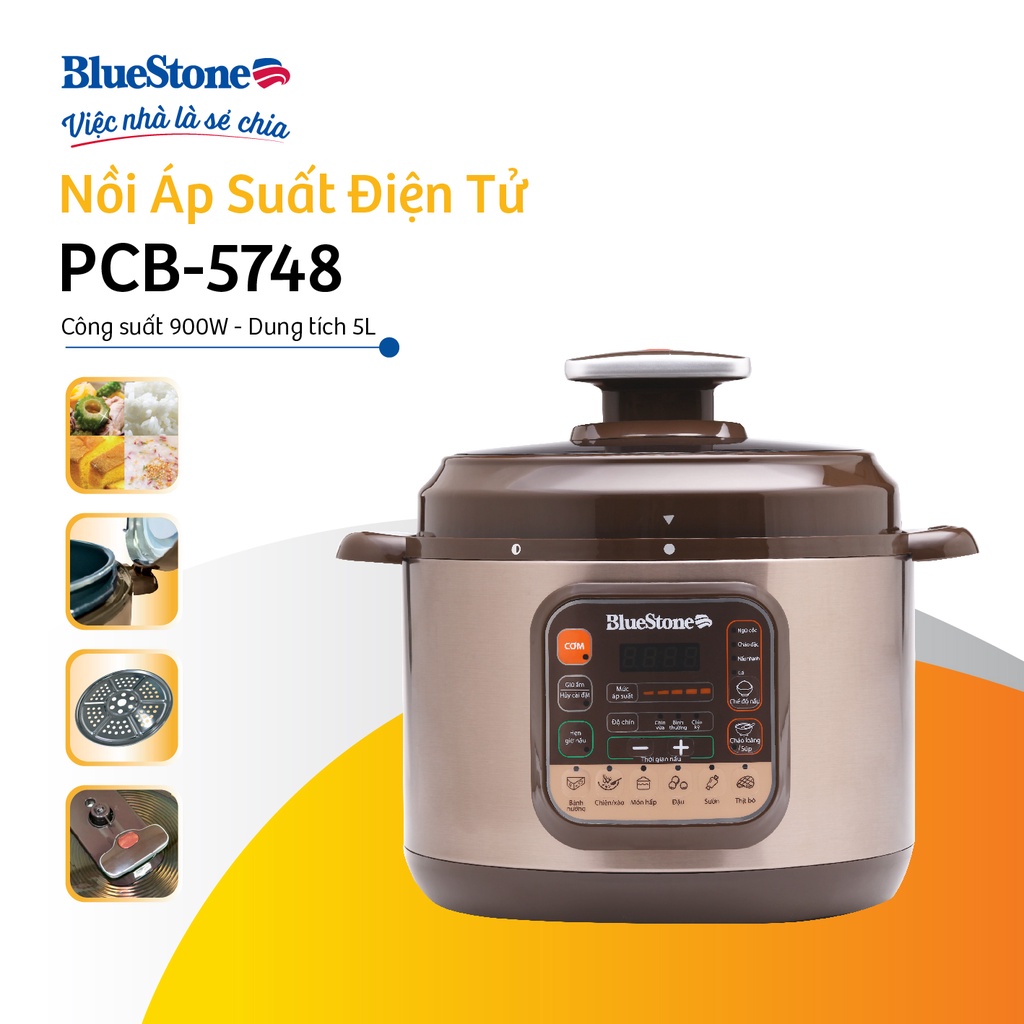 [Mã ELBLUE10 giảm 5% đơn 500k] Nồi áp suất BlueStone PCB-5748 - Bảo hành 24 tháng - Hàng Chính Hãng free ship