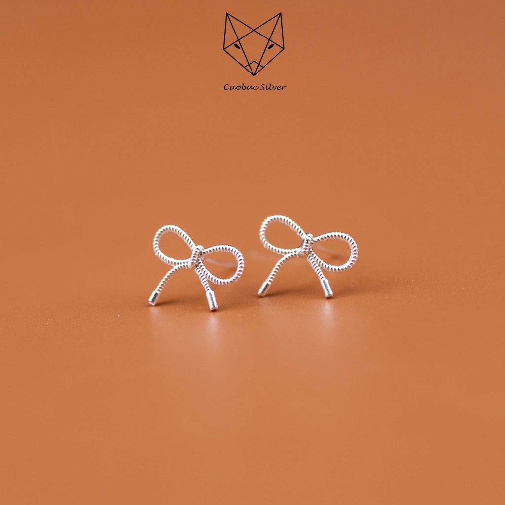 Khuyên Tai Bạc Ta Nữ CaoBac Silver Sợi Nơ Đơn Giản Xinh Xắn free ship
